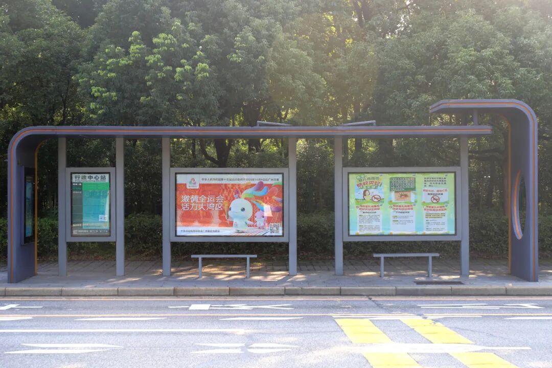 在增城主城区主干道公交候车亭,十五运会宣传海报持续轮播,让选择公共交通出行的市民也能感受到“全运就在身边”。
