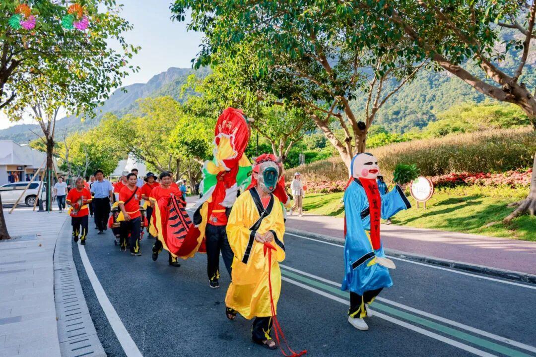 群山环抱中,广东省级非遗“舞貔貅”腾挪起舞,铿锵锣鼓与潺潺流水相和,广州市级非遗“增城剪纸”将全运元素与岭南风情结合,让体育、生态、非遗、文化在互动中相融互促。
